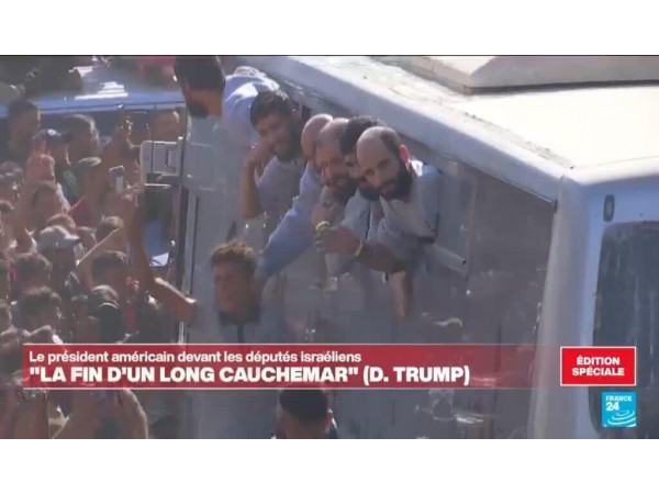 Des cars transportant des Palestiniens tout juste libérés par Israël dans le cadre de l'échange avec les derniers otages vivants retenus captifs dans la bande de Gaza sont arrivés. Israël a interdit les célébrations et chants qui pourraient faire l'apologie du Hamas, alors "les célébrations sont contenues", rapporte notre correspondante Claire Duhamel, en direct de Ramallah. Nous en parlons aussi et notre invité Jean-Paul Chagnollaud, professeur émérite des universités et président honoraire de l'IREMMO.