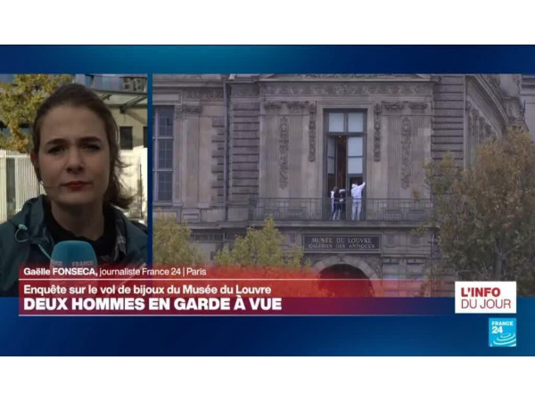 Deux hommes soupçonnés d'avoir participé au vol spectaculaire de bijoux patrimoniaux au musée du Louvre ont été placés en garde à vue, a déclaré, dimanche, la procureure de la République de Paris, Laure Beccuau. Les précisions de Gaëlle Fonseca, journaliste à France 24.