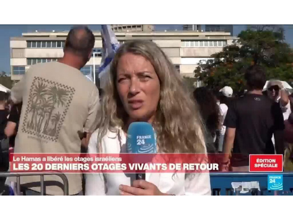 Donald Trump a été ovationné sur la place des Otages lors de son discours à la Knesset. Notre envoyée spéciale Pauline Godart rapporte que des hélicoptères transportant des ex-otages la survolent, et que la foule les salue.