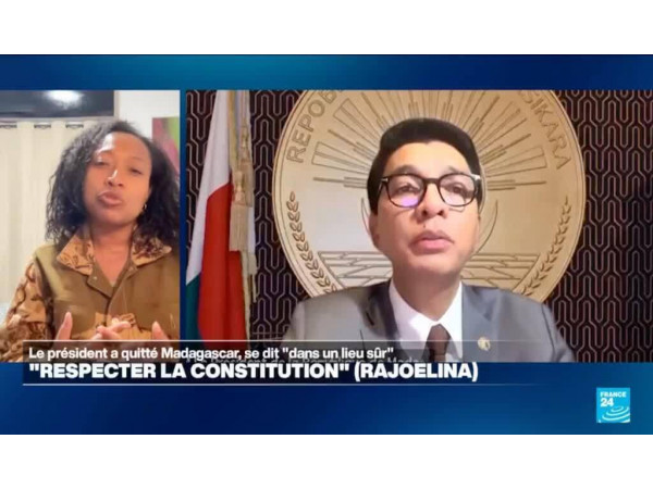 Il n'avait pas été entendu depuis samedi, lorsque le contingent militaire a décidé de ne plus obéir aux ordres. Le président malgache, Andry Rajoelina, a écarté lundi soir toute démission en appelant à "respecter la Constitution", dans sa première prise de parole depuis un lieu inconnu. "Un discours sans surprise", estime la correspondante de France 24 à Madagascar, Gaëlle Borgia. "Il n'a fait aucune allusion à sa présumée exfiltration par la France."