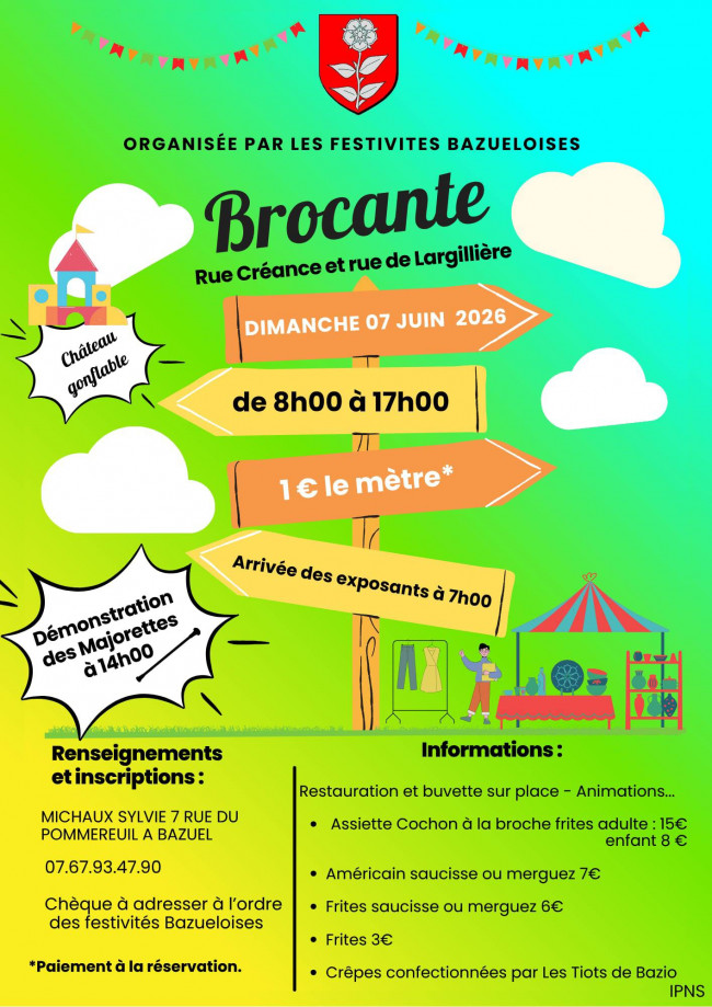 Brocante organisée par les festivités Bazueloises, rue Créance et rue de Largilière