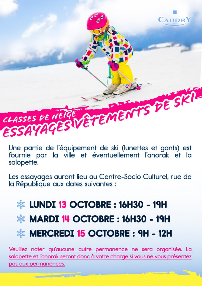 Chaque année, la Municipalité organise un séjour d’une quinzaine de jours en classe de neige. Les élèves de CM1 des 4 écoles publiques de Caudry et de la CLIS peuvent ainsi découvrir les plaisirs de la montagne en hiver.