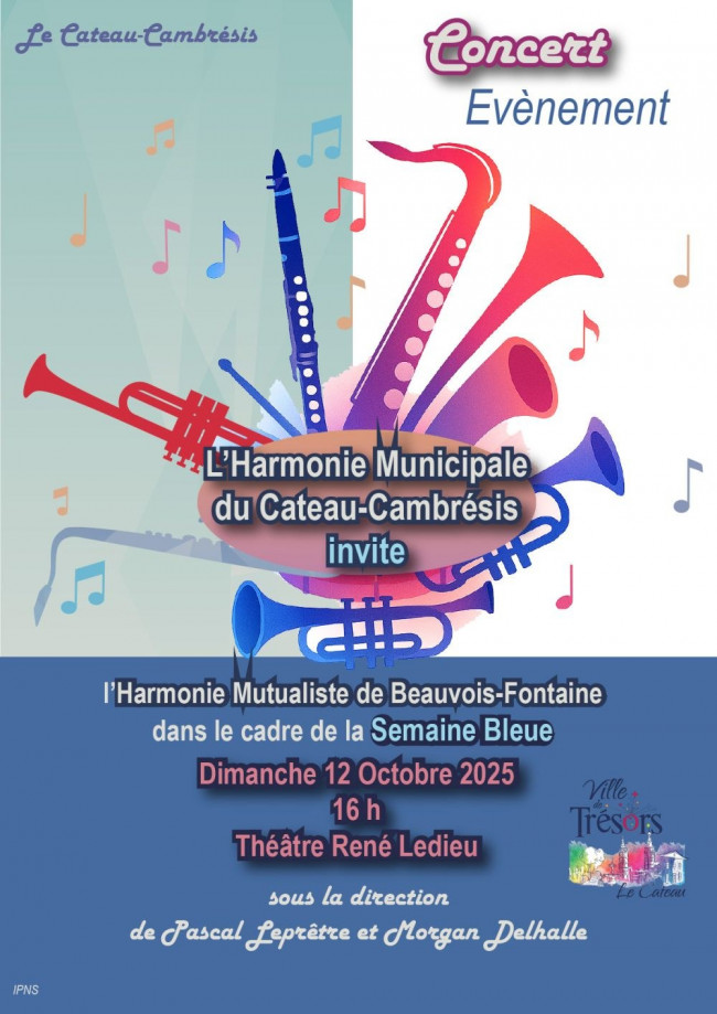 Concert évènement : l'Harmonie municipale du Cateau-Cambrésis invite l'harmonie Mutualiste de Beauvois-Fontaine dans le cadre de la semaine bleue sous la direction de Pascal Leprêtre et Morgan Delhalle