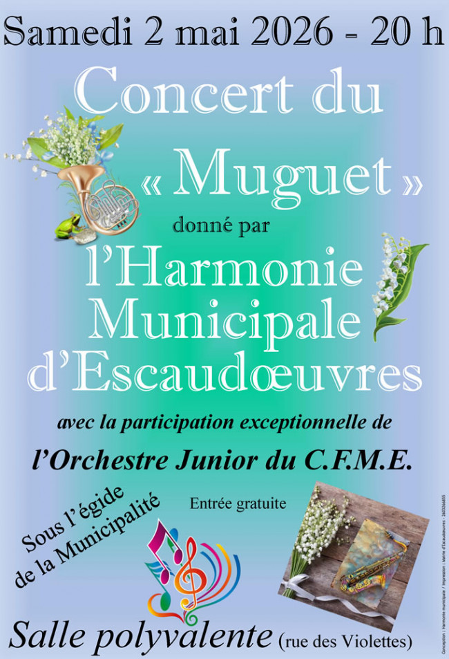 Concert du muguet donné par l'Harmonie Municipale d'Escaudoeuvres avec la participation exceptionnelle de l'Orchestre Junior du C.F.M.E. sous l'égide de la municipalité.