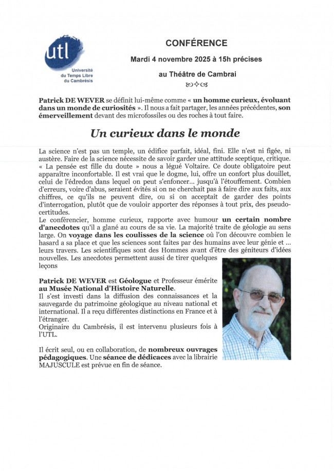 Originaire du Cambrésis, il est intervenu plusieurs fois à l’UTL.