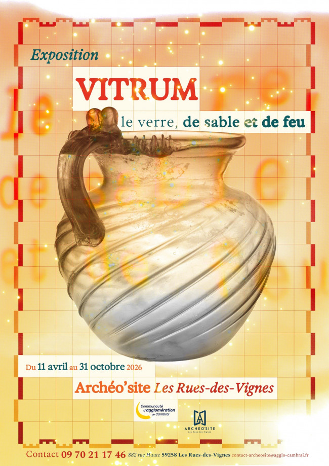 Apparu dès le Vè millénaire avant Jésus-Christ, et soufflé à partir du 1er siècle avant notre ère, le verre, né de l’alliance du sable et du feu bénéficie dans l’Antiquité et au Haut- Moyen-Age de techniques de mieux en mieux maîtrisées. Fascinés par ses vertus de transparence et de luminosité et par la profondeur de ses couleurs, les verriers romains, mérovingiens et carolingiens créent des formes élégantes, innovantes et d’usages variés. Grâce à notre nouvelle exposition, vous effectuerez un voyage à travers le temps, à la découverte d’un art du luxe qui a permis la réalisation de verres à boire, contenants à parfum, perles, décors d’incrustation, vitres et vitraux… Sans oublier que le verre se décline aussi dans des usages funéraires, sacrés ou médicaux. Les objets archéologiques prêtés par des musées régionaux seront placés en regard d’œuvres contemporaines, car les verriers actuels apprécient toujours ce matériau qui capte la lumière et la reflète dans des jeux infinis de brillance et de couleur et qui confère une aura de mystère et de raffinement aux objets.