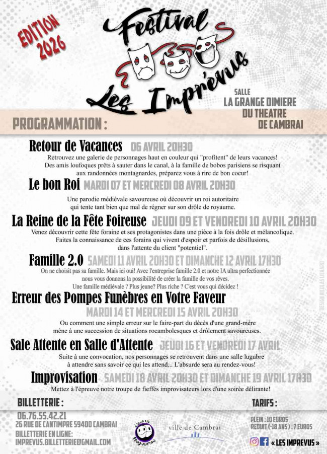 Billetterie en ligne : imprevus.billetterie@gmail.com