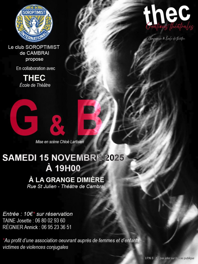 Le Club Soroptimist international Cambrai propose, en collaboration avec THEC, la représentation de la pièce "G & B" interprétée par des élèves de l'Ecole de Théâtre Cambrai :