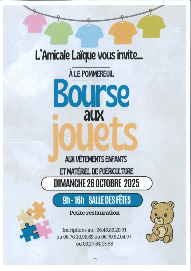 L’Amicale Laïque vous donne rendez-vous le dimanche 26 octobre 2025, de 9h à 16h, à la salle des fêtes de Le Pommereuil, pour une journée conviviale pleine de bonnes affaires !