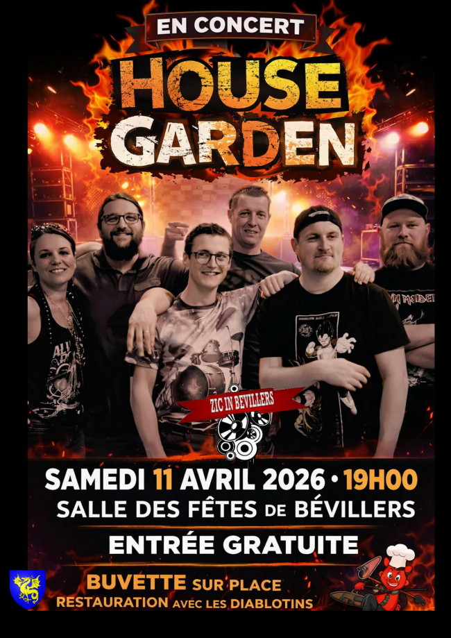 House garden en concert à 19h le samedi 11 avril 2026 à la salle des fêtes de Bévillers