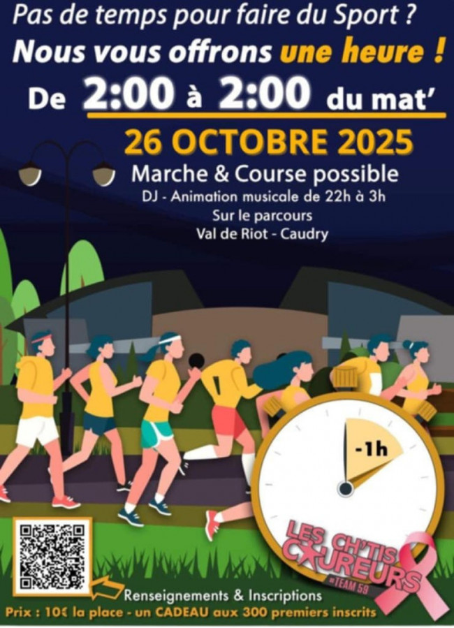 Rendez-vous le dimanche 26 octobre 2025, de 2h à 2h du matin (oui, on remonte le temps), au Val de Riot à Caudry.