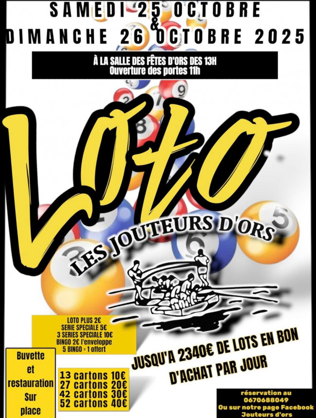 Réservation au 06 70 68 80 49 ou sur notre page Facebook Jouteurs d'ors
