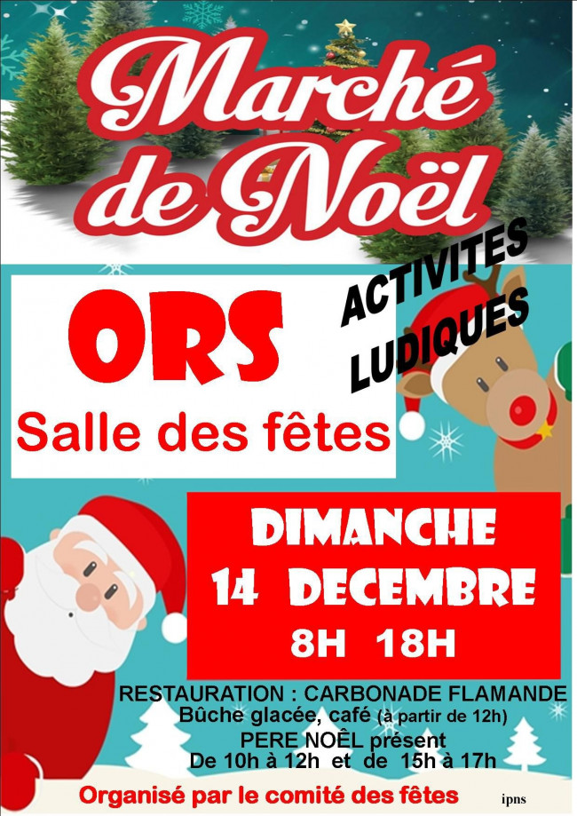 Marché de Noël organisé par le comité des fêtes d'Ors. Présence du Père Noël de 10h à 12h et de 15h à 17h