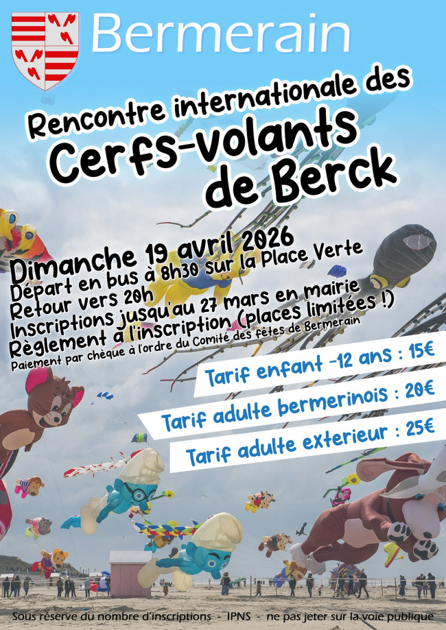 Enfant - de 12 ans : 15€ | Tarif adulte Bermerinois : 20€ | Tarif adulte extérieur : 25€