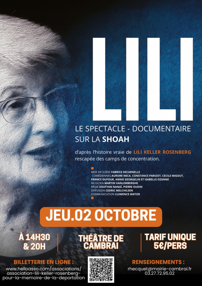 Dans le cadre du 80e anniversaire de l'année de la Victoire sur le nazisme et de la libération des camps, Mme Lili Keller-Rosenberg, 93 ans, l'une des toutes dernières survivantes françaises des camps de la mort, viendra témoigner exceptionnellement à Cambrai. Témoin infatigable de l'Histoire, Lili consacre sa vie depuis plus de 40 ans avec un courage admirable, à la transmission et au devoir de mémoire partout en France et en Europe.