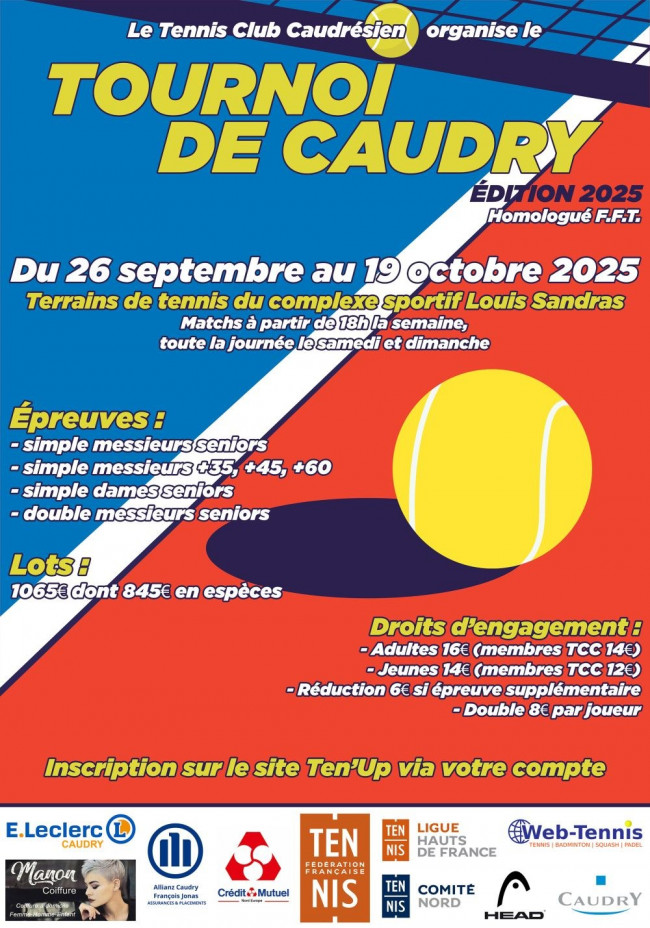 Le Tennis Club Caudrésien organise le TOURNOI DE CAUDRY - ÉDITION 2025