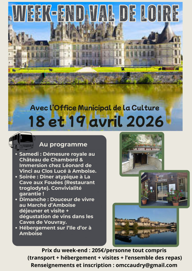 Prix du week-end : 205€/ personne tout compris (transport + hébergement + visites + l'ensemble des repas)